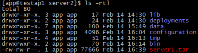 1. server1 인스턴스 하위 디렉토리들을 묶어서 tar파일 생성