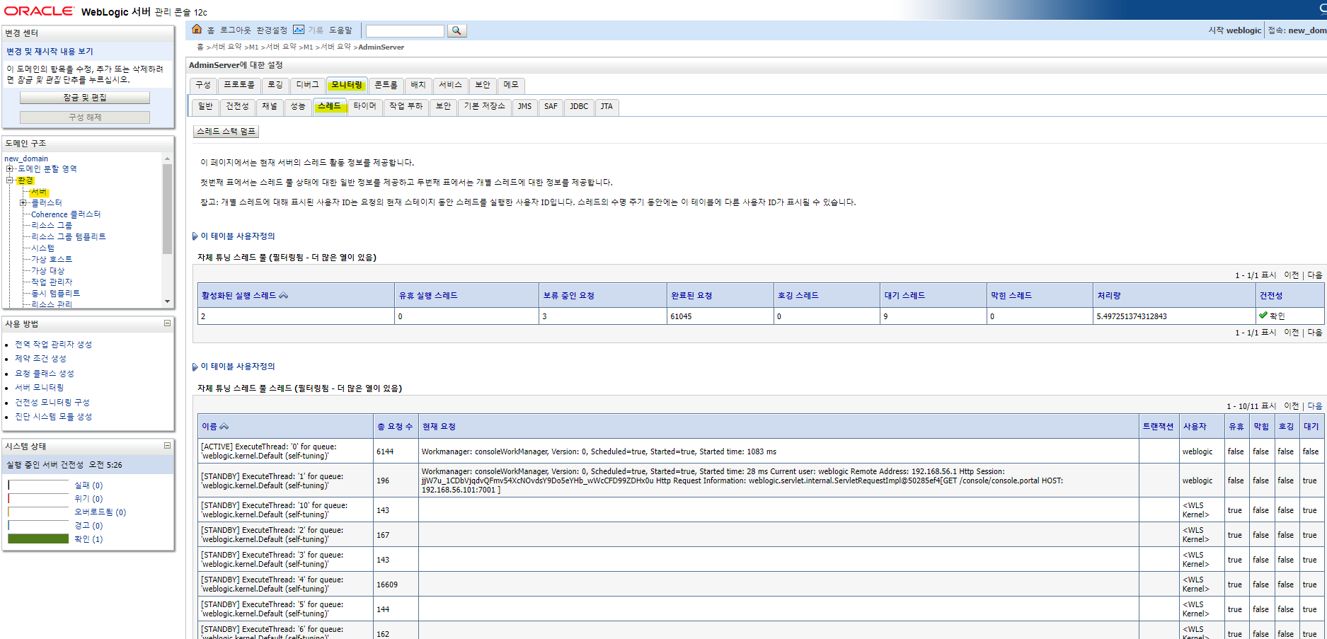 콘솔 - 환경 - 서버 - 서버 선택 - 모니터링 - 스레드