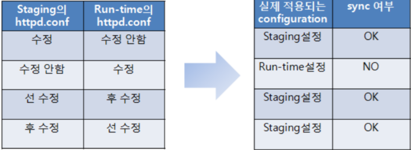 staging, Run-time directory는 두 디렉토리 안의 conf 파일들을 자동적으로 동기화 하는 특징을 가짐
