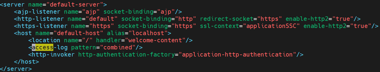 /subsystem=undertow/server=default-server/host=default-host/setting=access-log:write-attribute(name=pattern,value="combined"