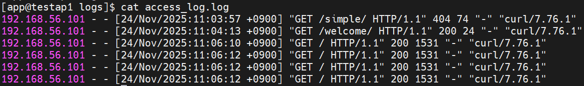 표준 엑세스 로깅과 콘솔 엑세스 로깅 설정이 있음