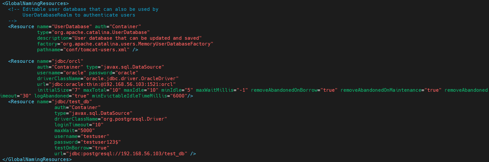 url="jdbc:postgresql://192.168.56.103:5432/test_db" username="testuser" password="testuser123$"