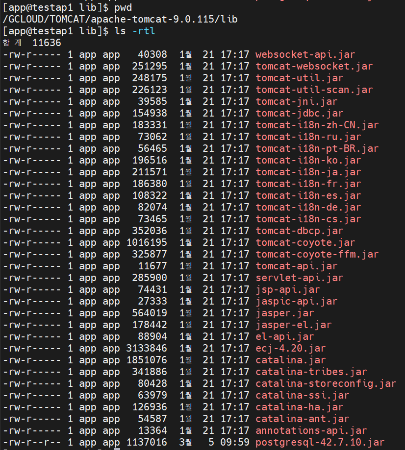 버전에 맞는 jdbc 드라이버를 다운로드하여 ${CATALINA_HOME}/lib 경로에 위치시키기