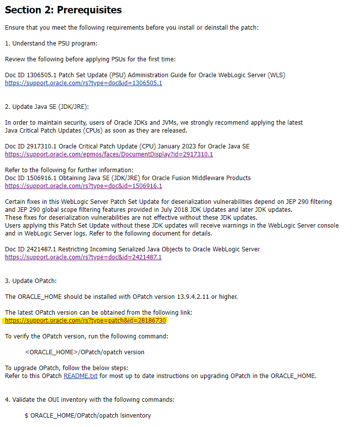 5. Section 2: Prerequisites에서 Update OPatch 내용 확인 및 링크 접속
