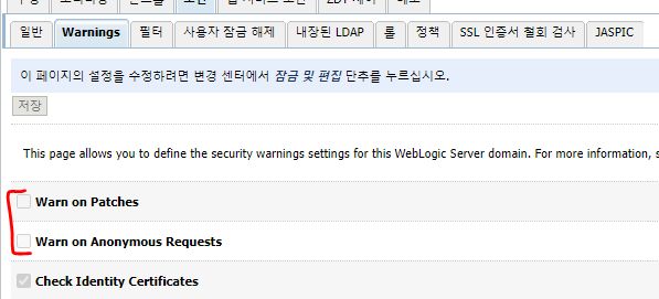 패치 후 웹로직 콘솔창에 다음과 같은 메세지 발생하는 경우 - 기본적으로 무시해도 됨