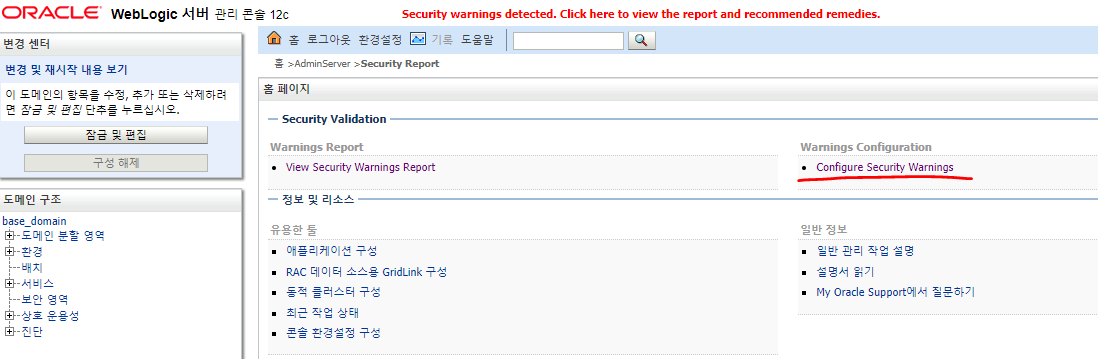 그래도 남아있는 경고 메세지는 ${DOMAIN_HOME}/bin 디렉토리를 640으로 변경해주면 되지만 이러면 bin 디렉토리 접근불가하므로 그대로 두고 쓰도록 할 것