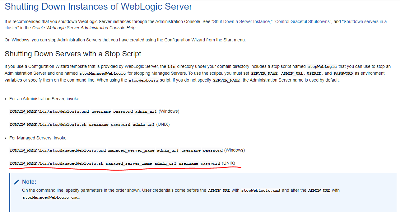 java weblogic.Admin -url t3://193.1.8.174:21091 -username weblogic -password weblogic FORCESHUTDOWN