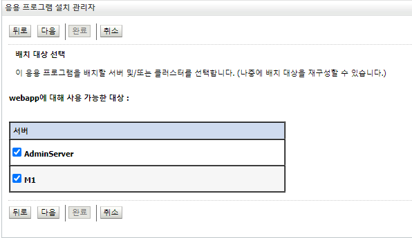 1. 어플리케이션 배치시 다음과 같이 대상 서버 선택
