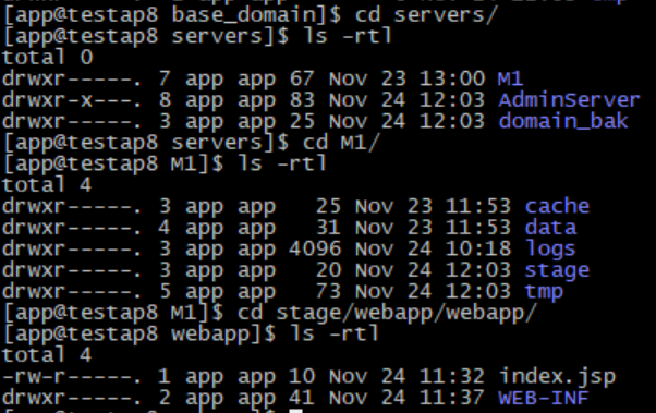 stage로 배치시 다음과 같이 각 인스턴스별 stage 디렉토리에 배치 디렉토리가 생성됨