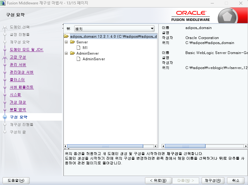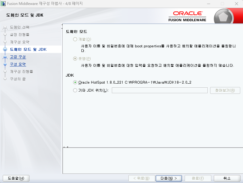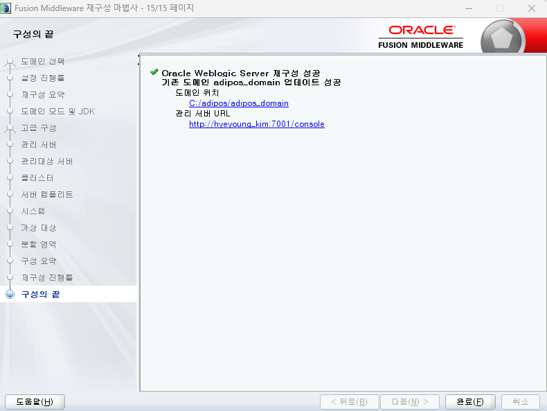4. 기존 경로의 도메인에서 웹로직 인스턴스 실행