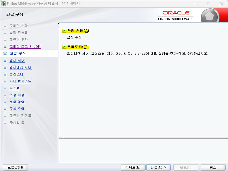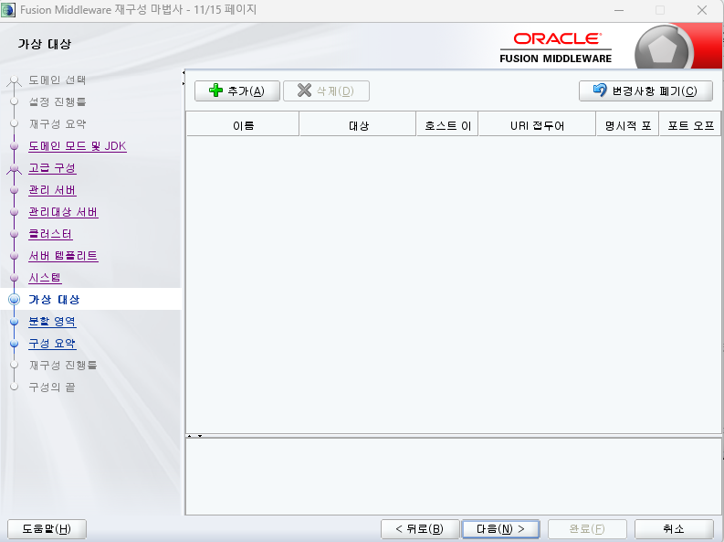 (오라클 홈을 다른 이름으로 변경하고 동일한 이름 경로로 새 버전 웹로직을 설치했기 때문)