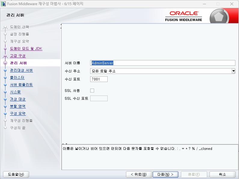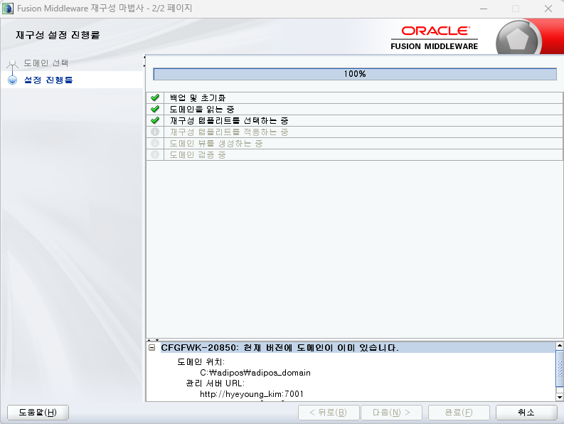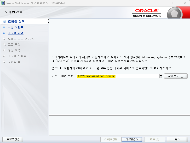※ 이 방식은 도메인 재구성을 하지 않는 방식으로 reconfig.sh을 실행하게 되면 다음과 같은 에러가 발생한다.