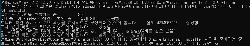 1. cmd 관리자 모드로 실행 후 설치파일 경로에서 다음과 같이 실행