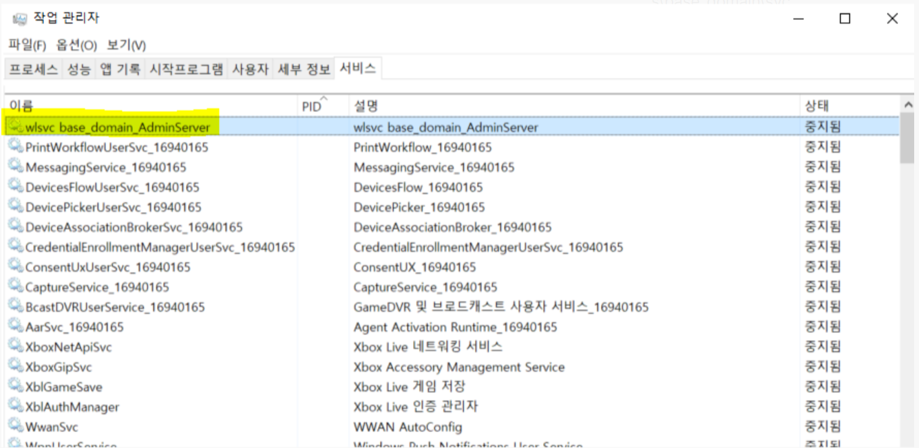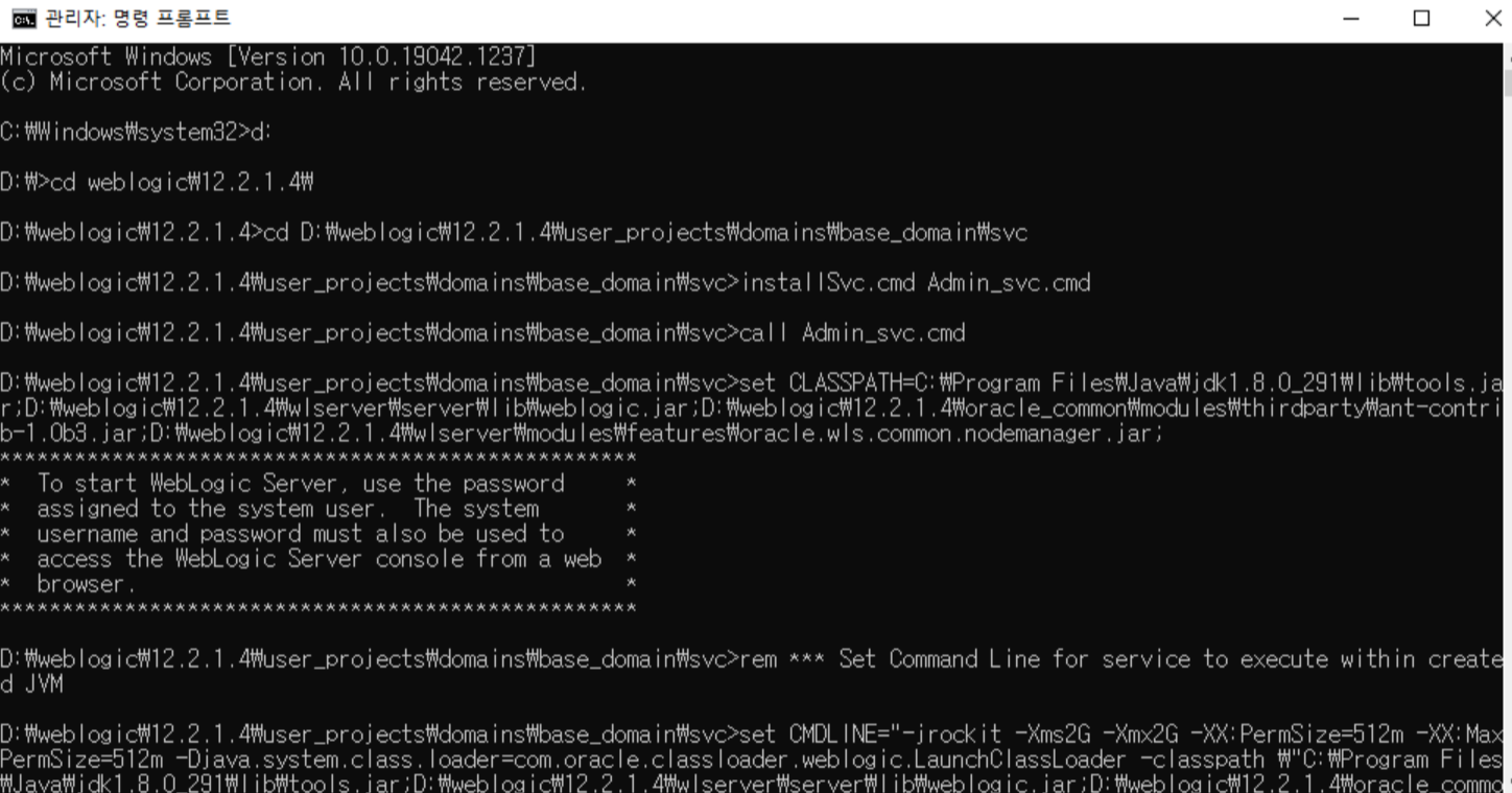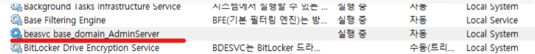 윈도우에 설치된 웹로직의 경우 OS 재기동시 자동으로 서버가 시작 수 있도록 서비스에 등록하는 것을 권장함