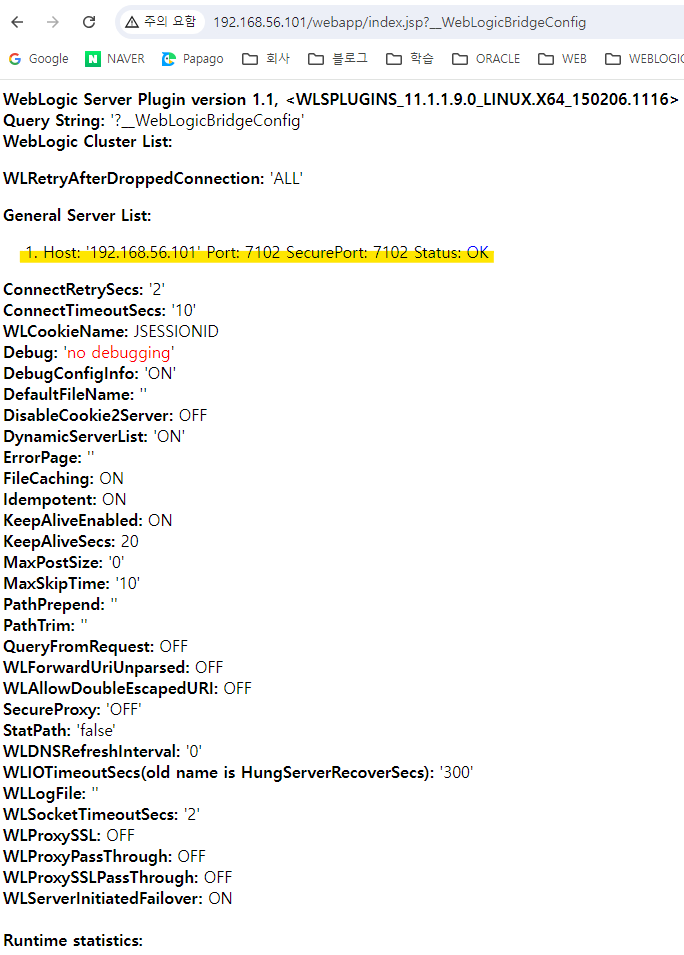 ohs - weblogic이 정상적으로 연동 되었는지 디버그 페이지를 통해 확인 가능