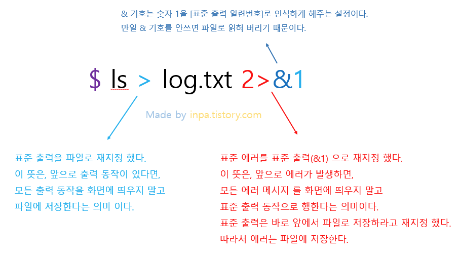 2 : 에러(stderr) : 명령어에서 출력될 에러메시지를 저장