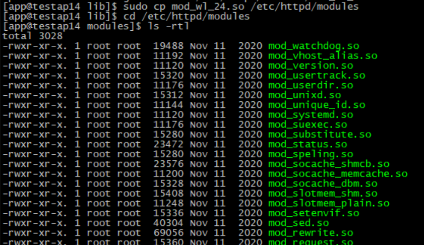 ldd ${아파치 모듈 경로}/mod_wl_24.so